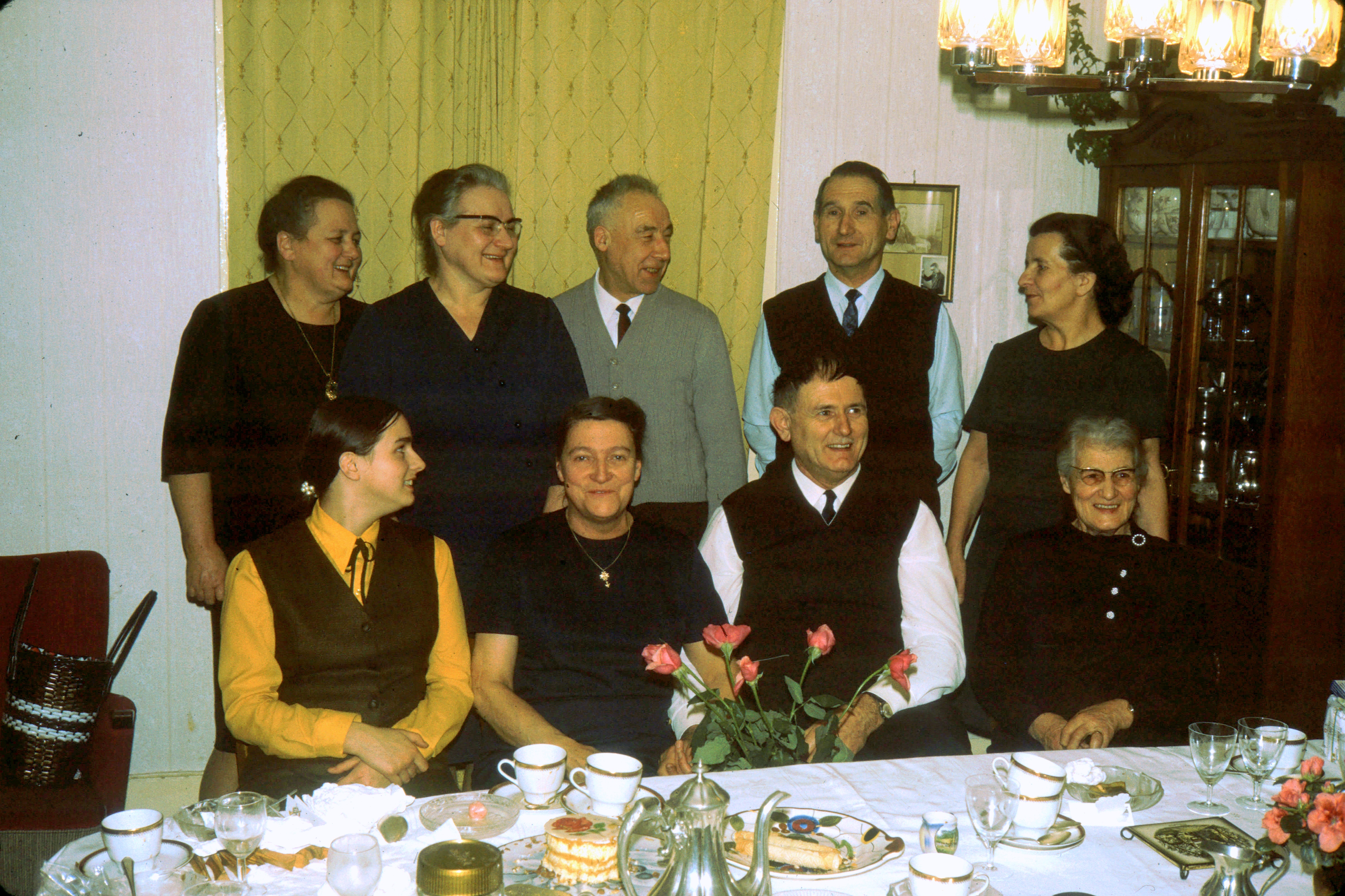Debout, juste derrière lui, son frère Daniel avec son épouse Marthe. A sa droite, ses sœurs Bluette et Marguerite avec le mari de Bluette.
